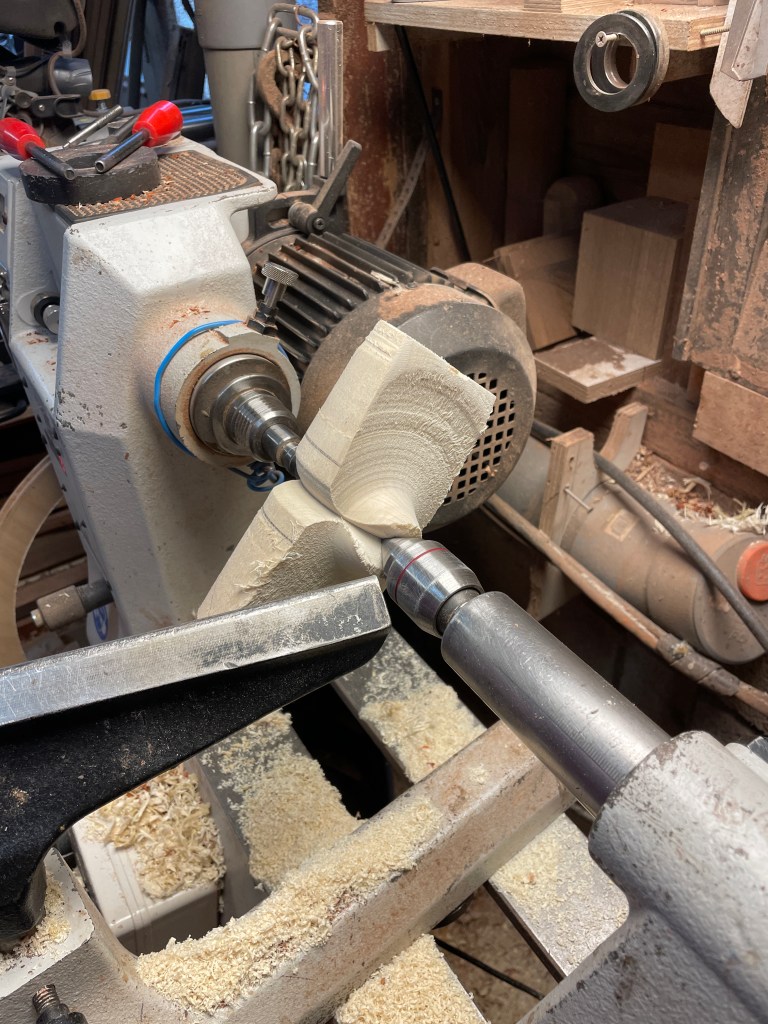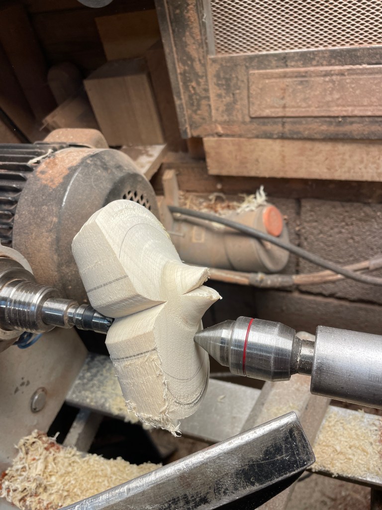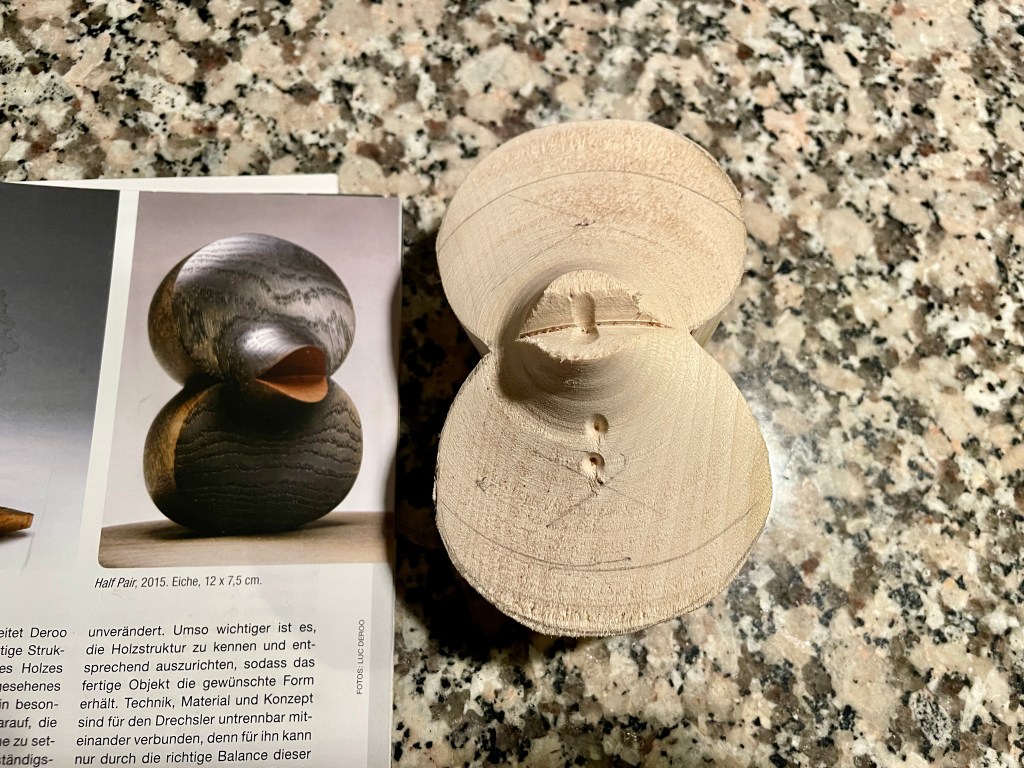 Vandaag hebben Dick en Flip geprobeerd een object van Luc Deroo na te maken. Flip zag een aantal fraaie objecten van Luc, vraag alleen is hoe maak je die? Dus de hulp van Dick werd ingeroepen. Na een dag lang proberen in een toch wel koude werkplaats, zijn we wel iets dichter bij het ontwerp gekomen maar we hebben nog niet de juiste manier van opspannen en draaien gevonden. Wie tips heeft kan zich bij ons melden.